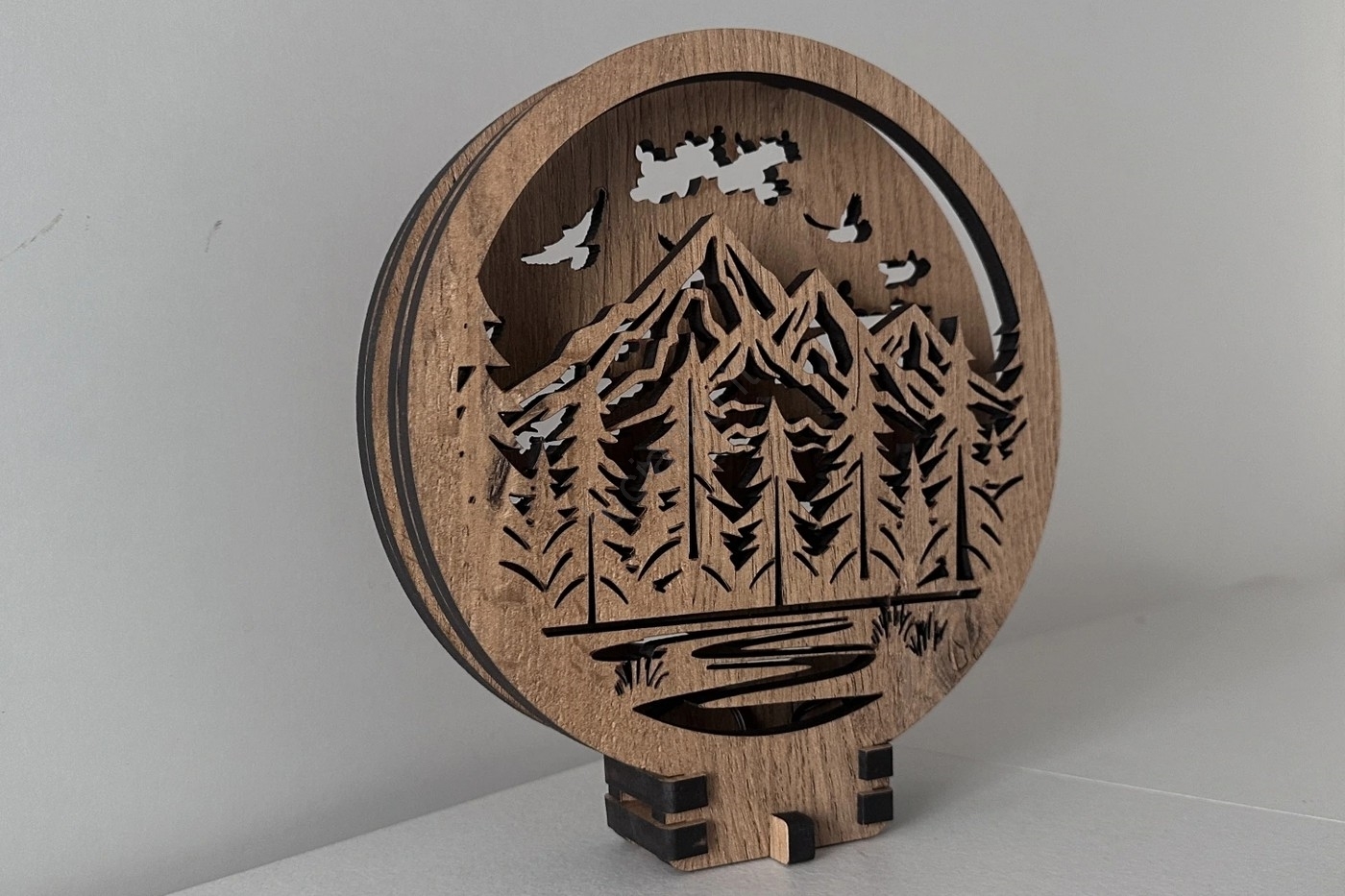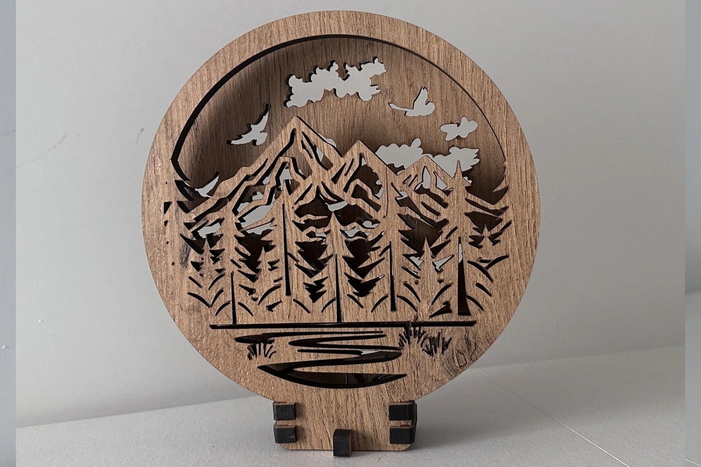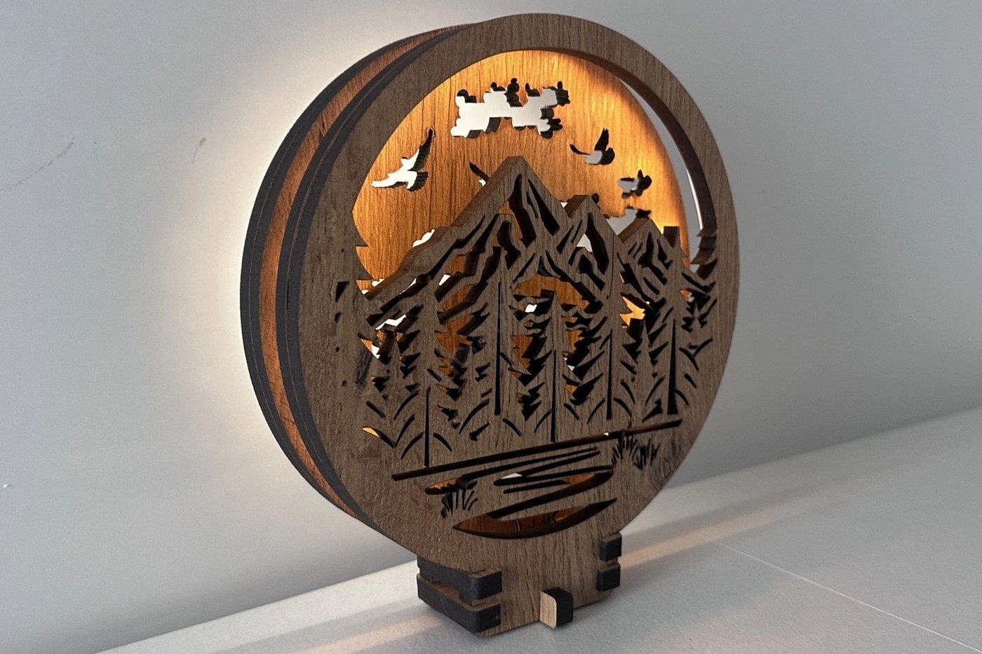 Li-Go 23583/DUB2 - Decorazione da tavolo LED dimmerabile LED/12W/230V 20x22 cm rovere/Montagne e foresta