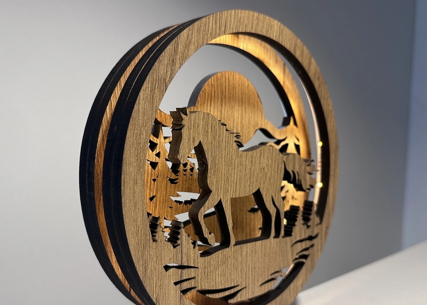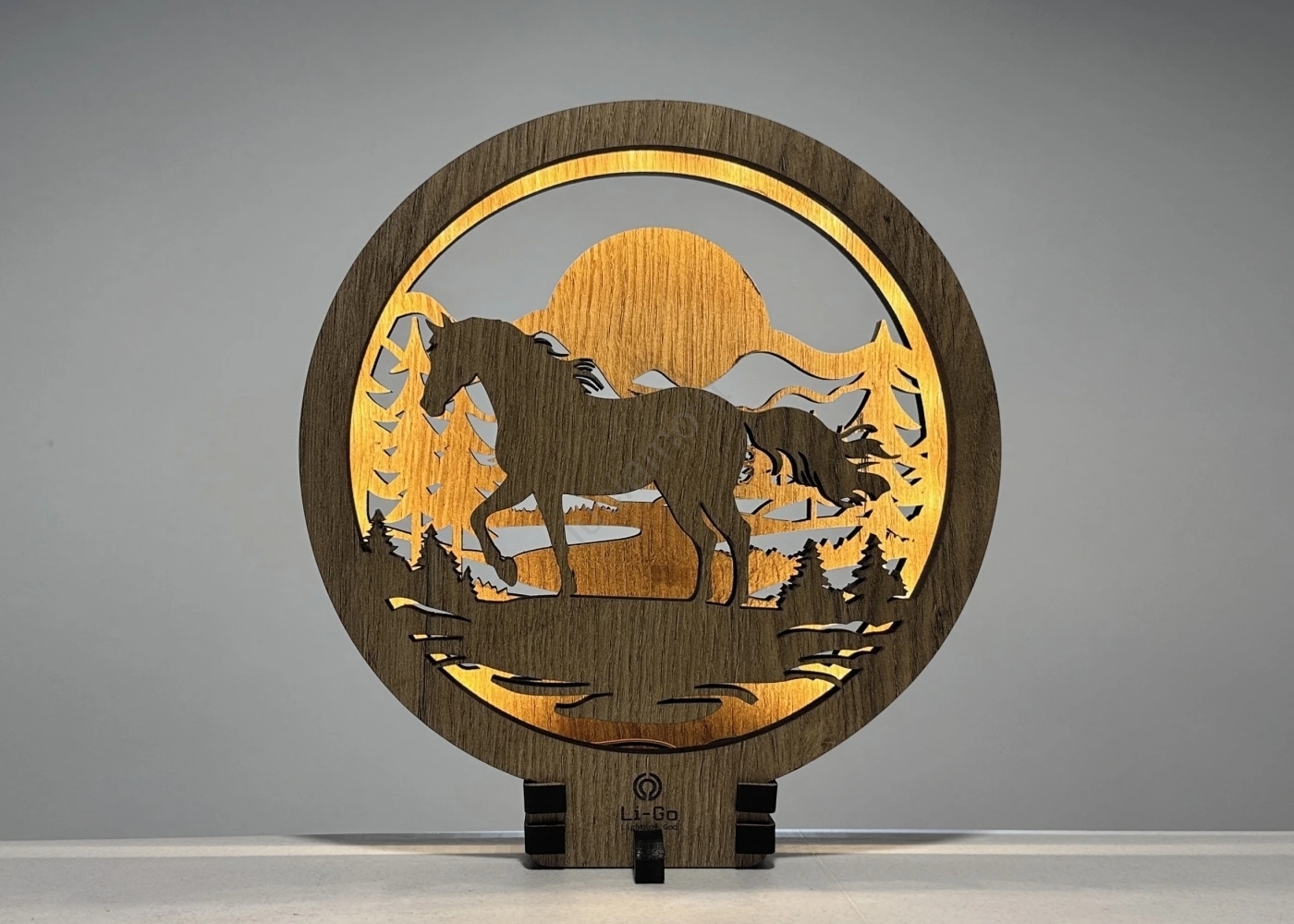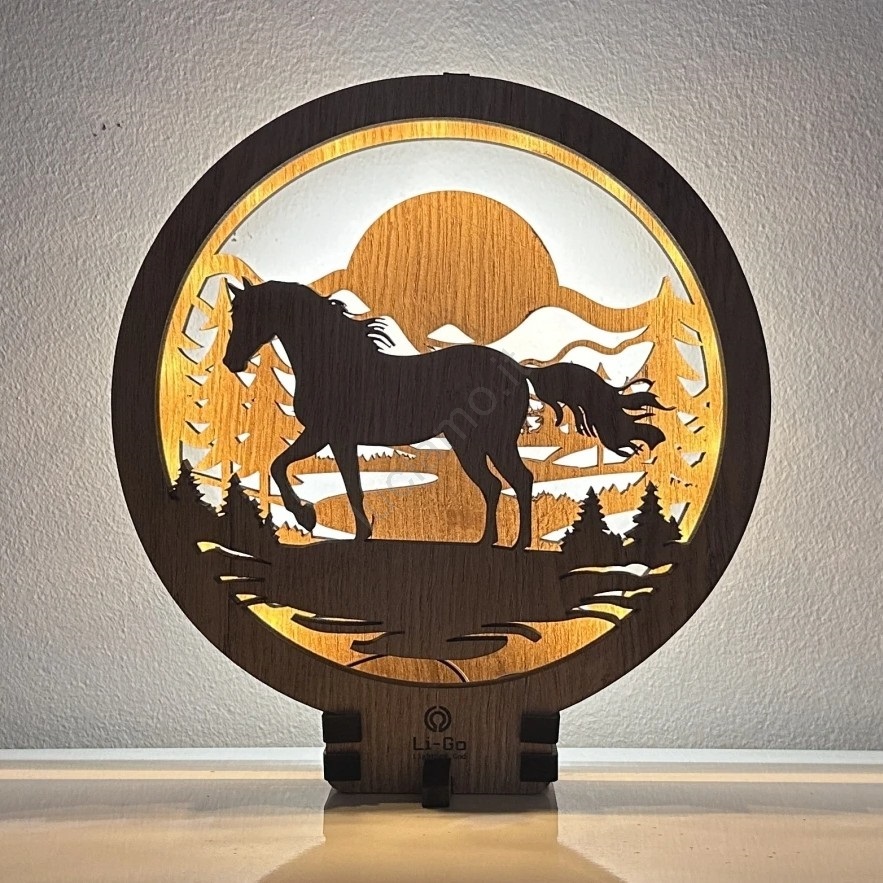 Li-Go 23598/DUB2 - Decorazione da tavolo dimmerabile a LED/12W/230V 20x22 cm rovere/cavallo
