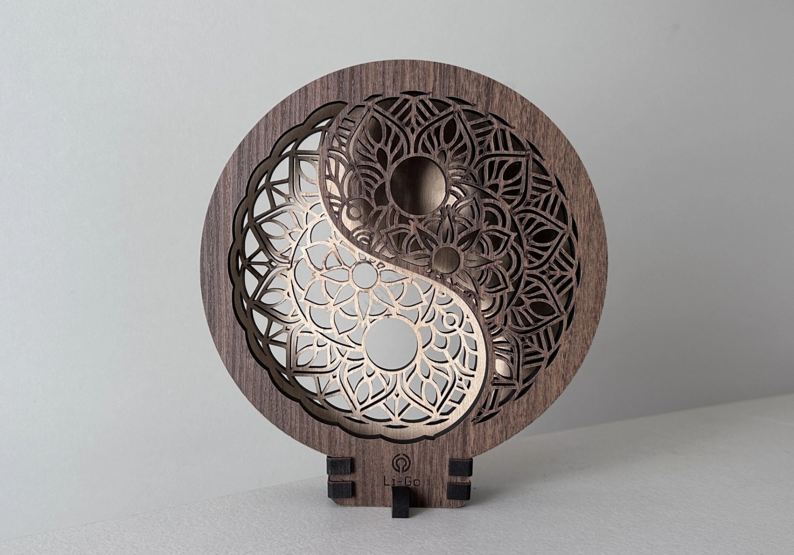 Li-Go 23607/O - Decorazione da tavolo LED dimmerabile LED/12W/230V 20x22 cm noce/Yin Yang