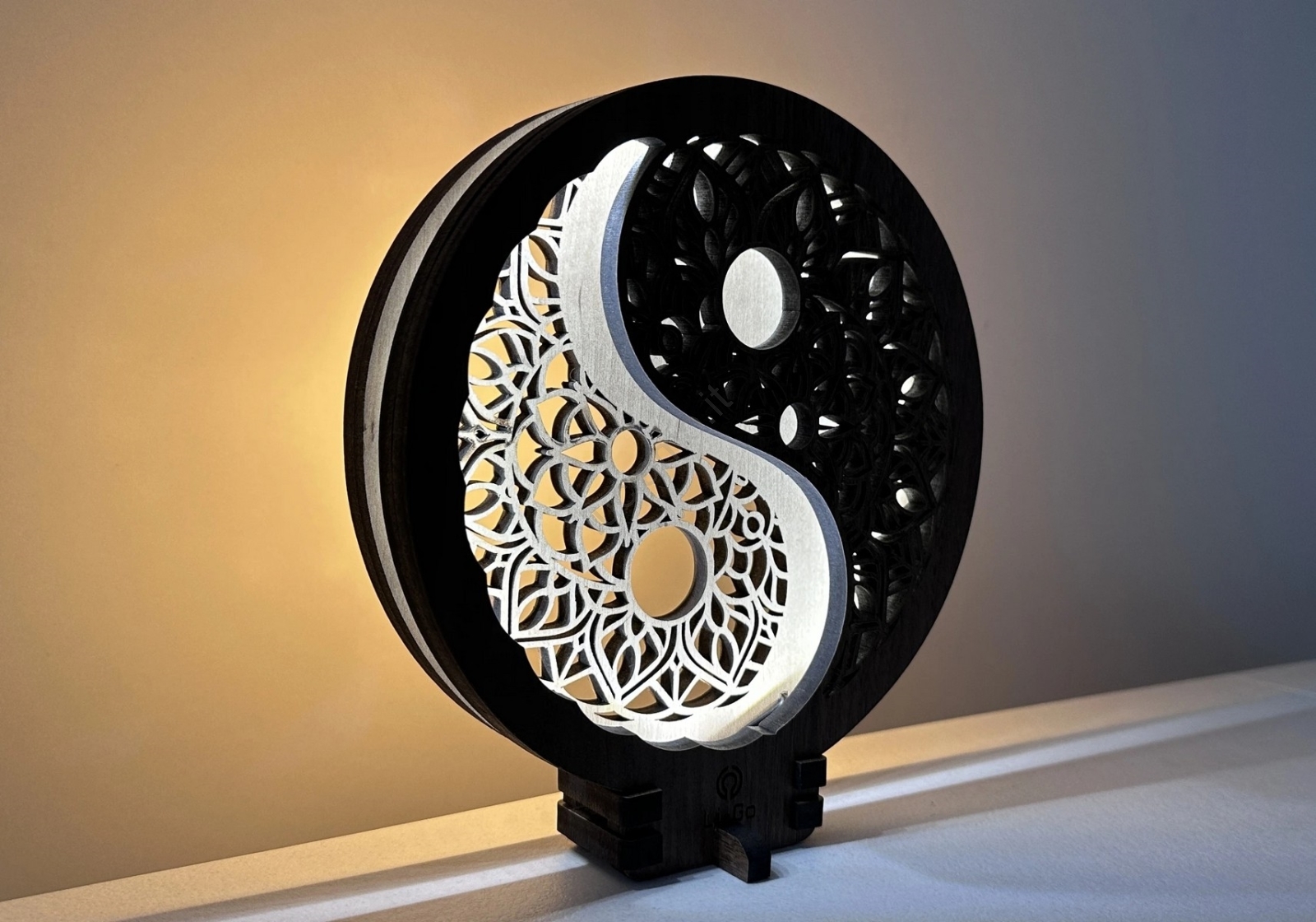 Li-Go 23607/O - Lampada da tavolo decorativa dimmerabile a LED/12W/230V 20x22 cm noce/Yin Yang