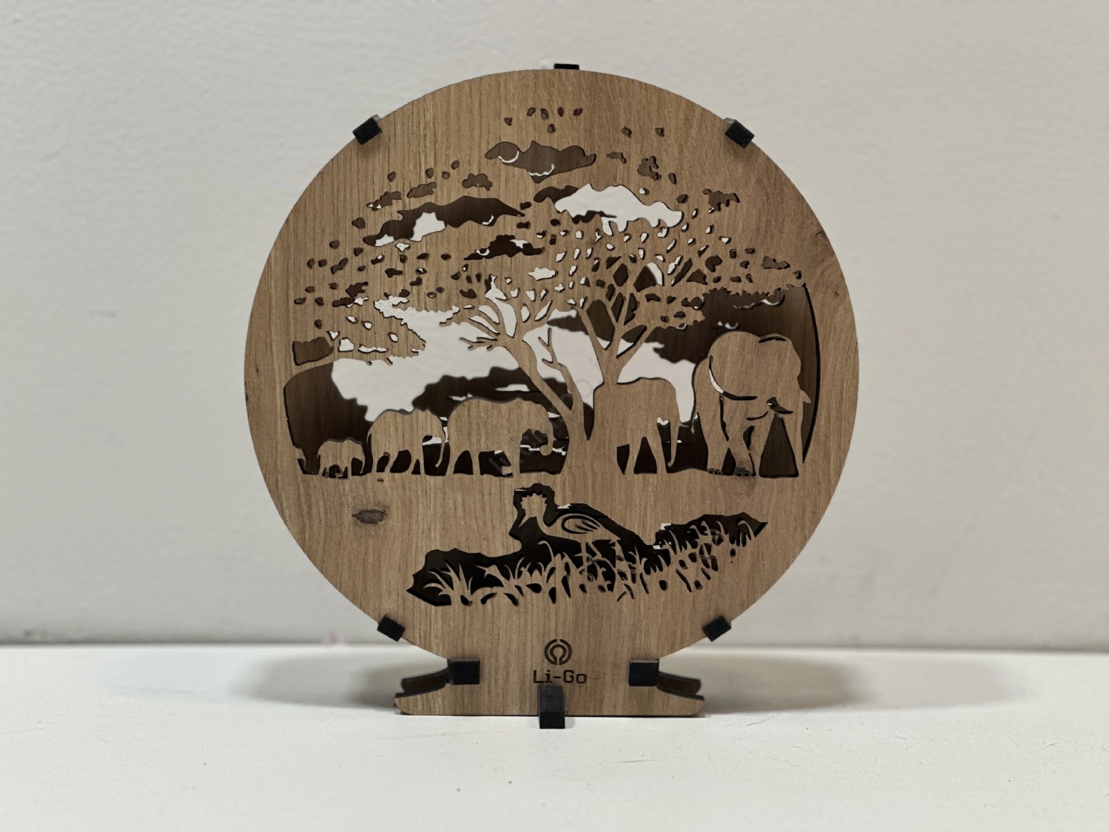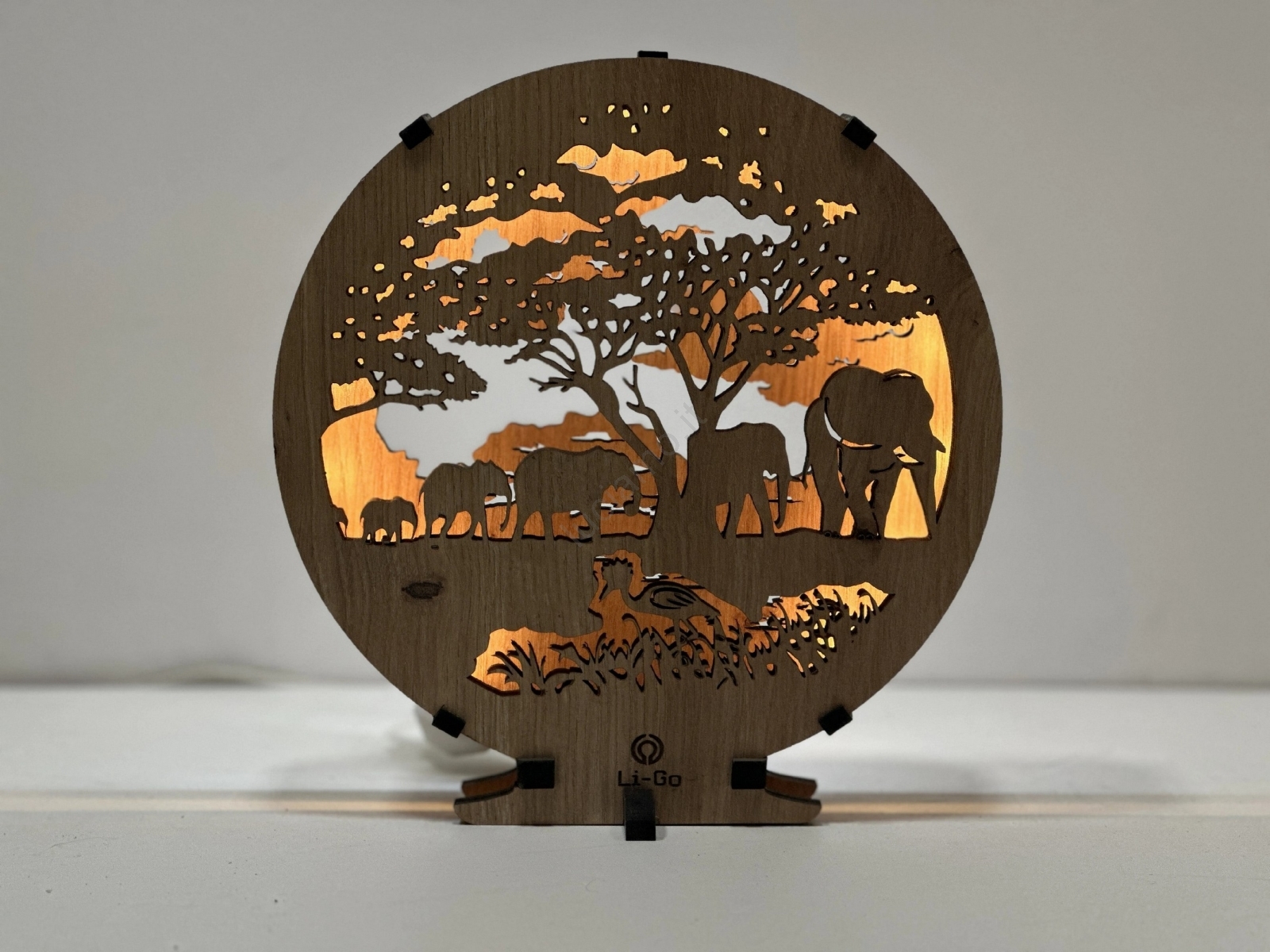 Li-Go 23610/DUB2 - Lampada decorativa da tavolo LED dimmerabile LED/12W/230V 20x22 cm rovere/elefanti