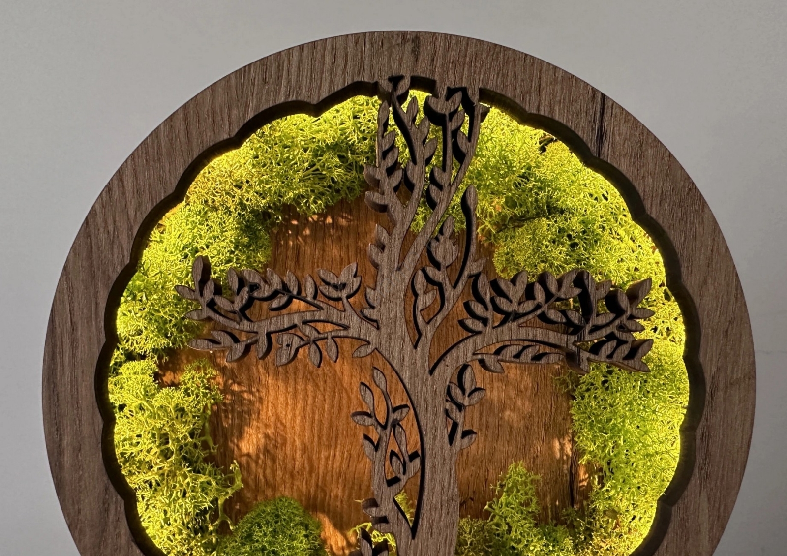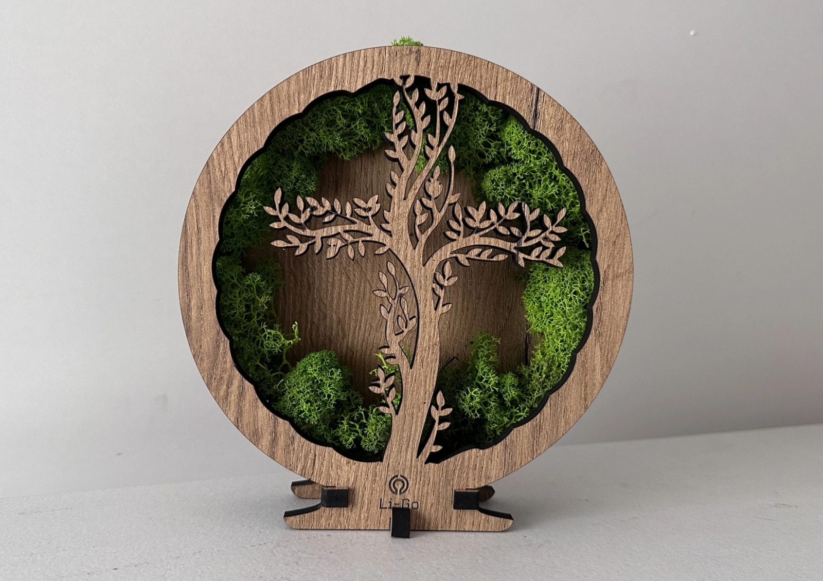 Li-Go 23622/DUB2 - Decorazione da tavolo dimmerabile a LED LED/12W/230V 20x22 cm rovere/Croce nel muschio
