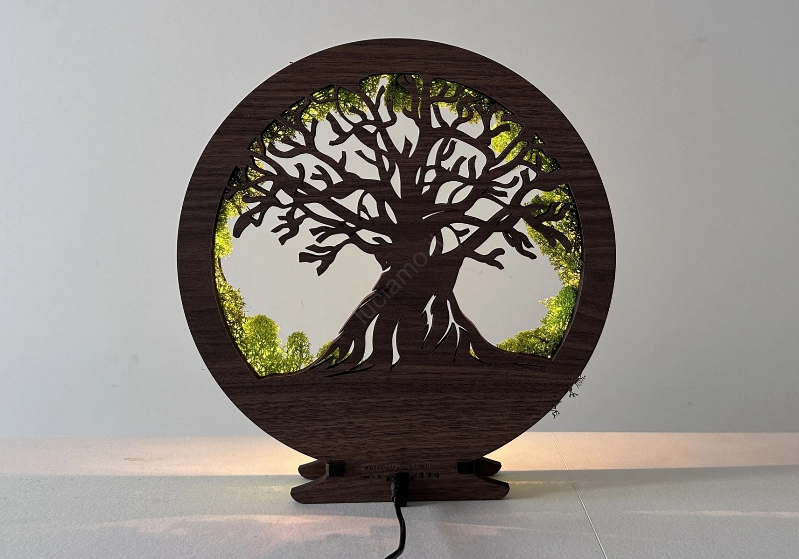Li-Go 23631/DUB2 - Decorazione da tavolo dimmerabile a LED/12W/230V 30x31 cm rovere/muschio e albero