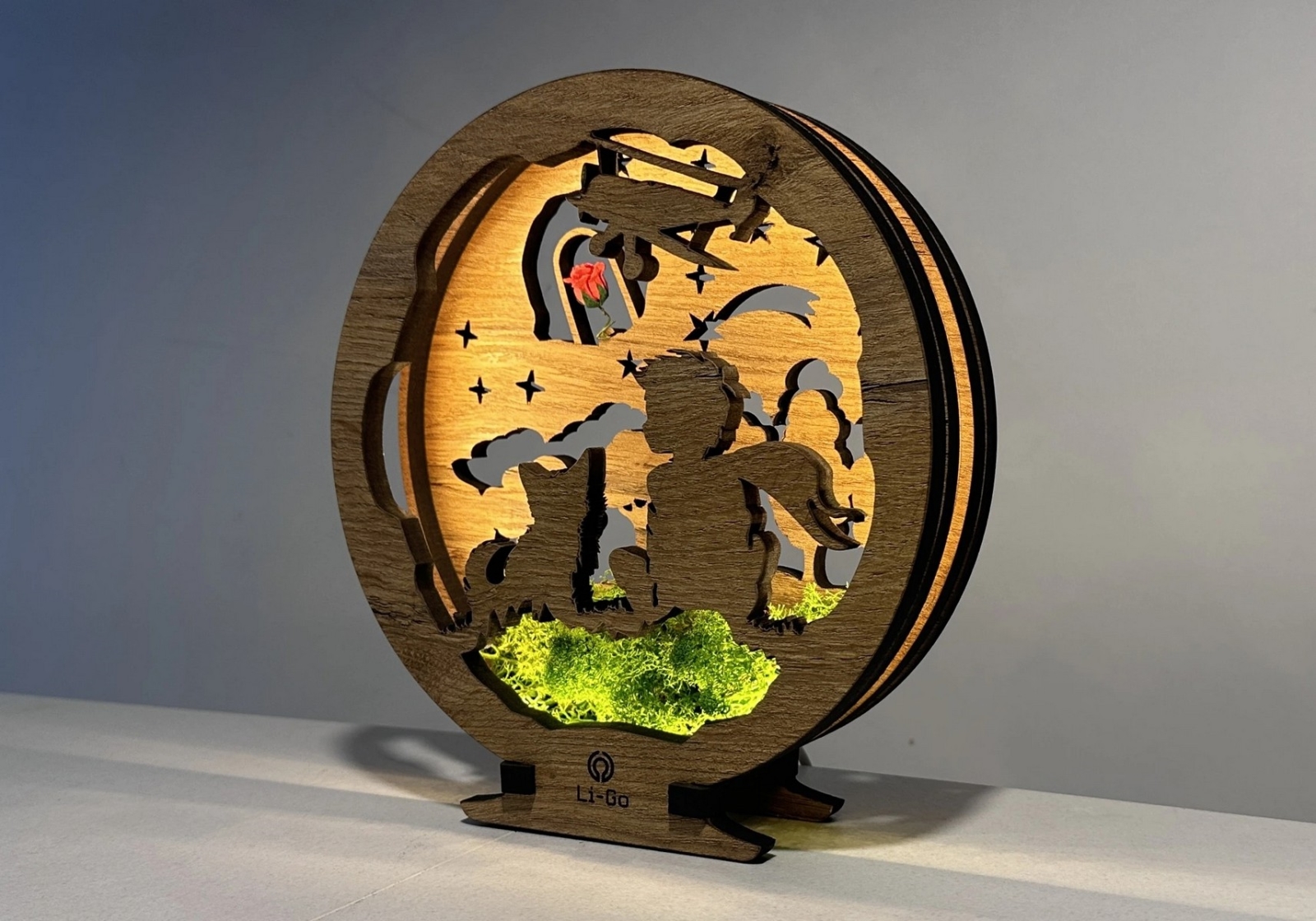 Li-Go 23634/DUB2 - Decorazione da tavolo dimmerabile a LED 12W/230V 20x22 cm rovere/Il piccolo principe con la rosa