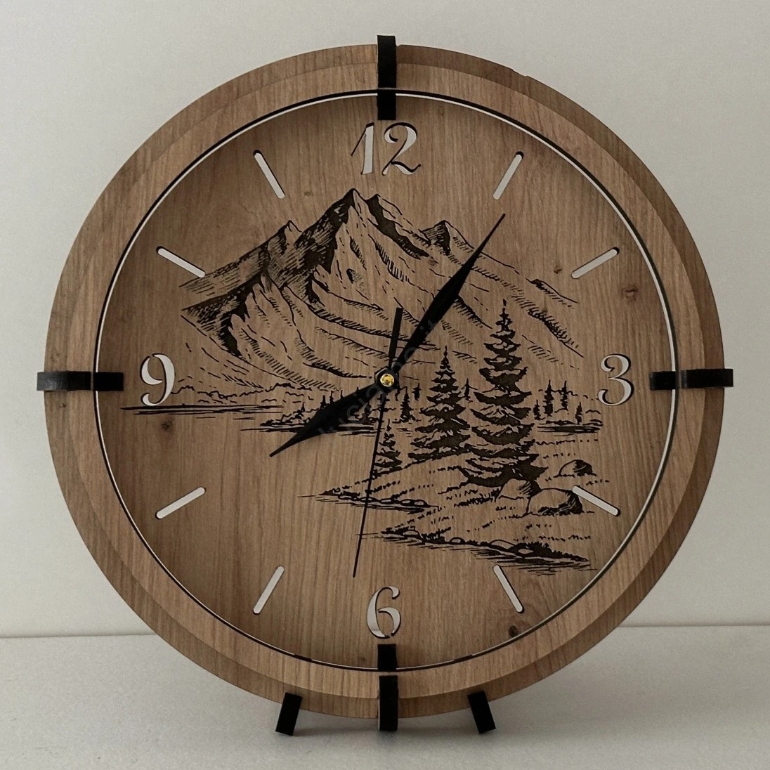 • Li-Go 23676/DUB5 - Orologio in legno 1xAA Ø 32 cm rovere/montagne