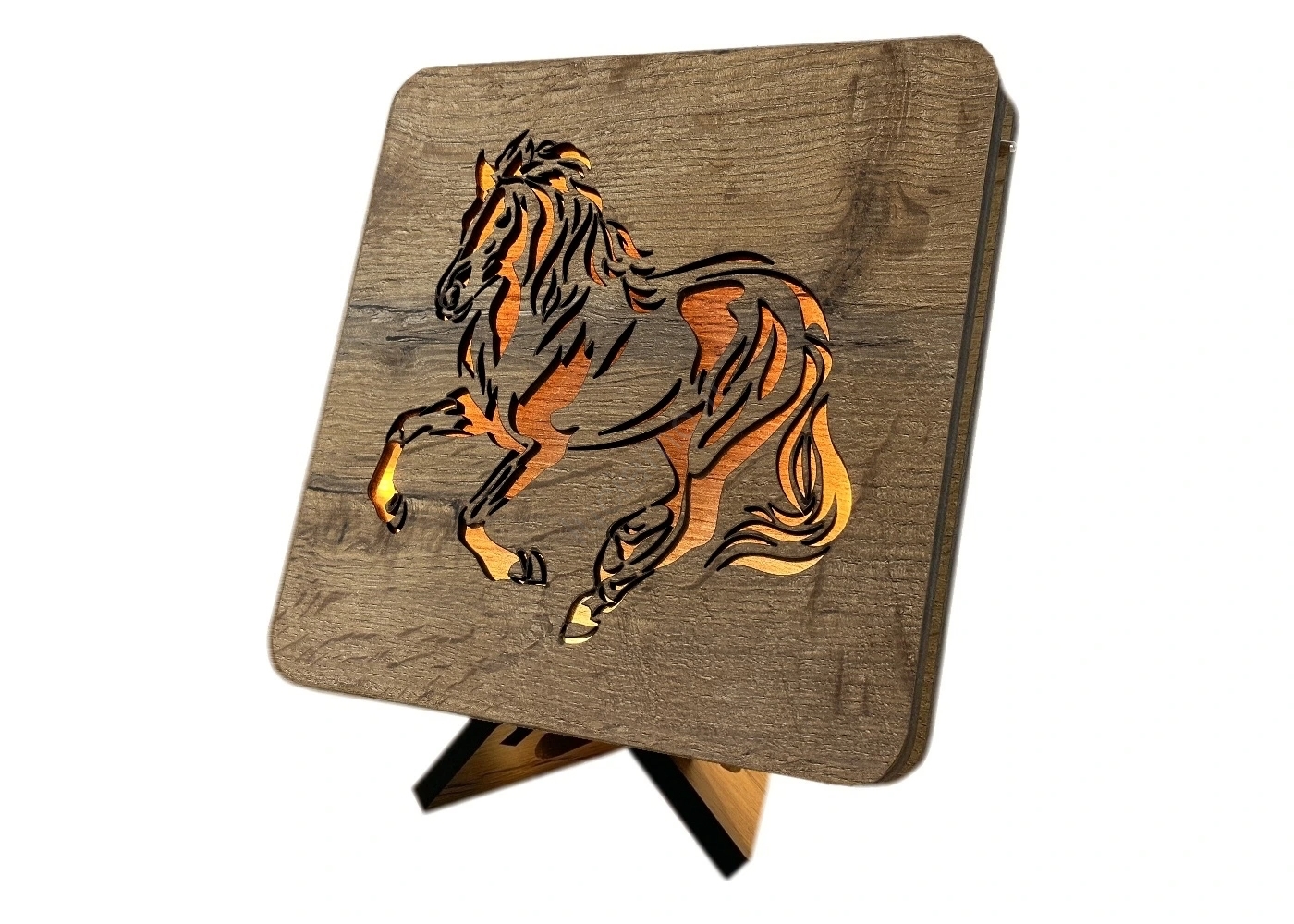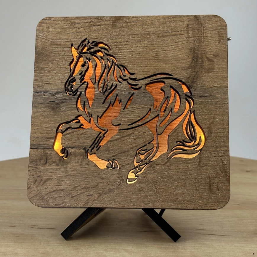 Li-Go 4070/DUB2 - Lampada da tavolo decorativa a LED, 12W/230V, 19x19 cm, rovere/motivo cavallo