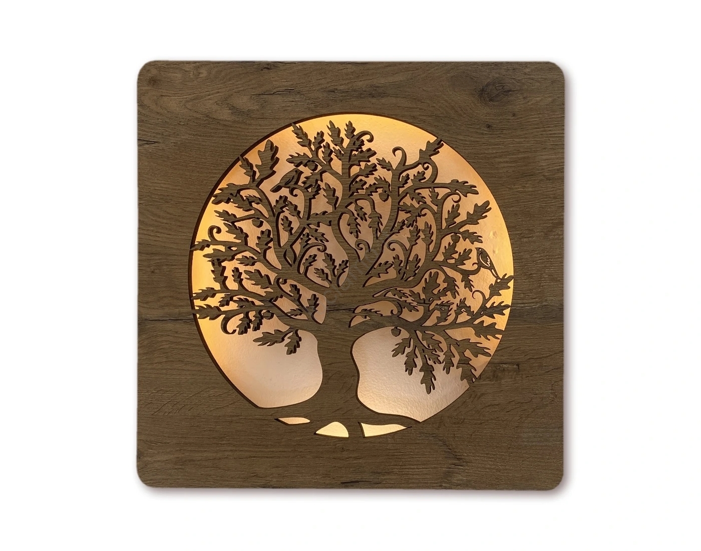 Li-Go 5275/DUB2 - Decorazione da parete dimmerabile a LED 10W/5V 20000 mAh 42x42 cm rovere/rovere a forma di cerchio + telecomando