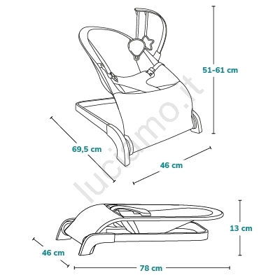 • La sdraietta a dondolo si muove con i movimenti naturali del bambino, favorendo lo sviluppo della motricità e dell’equilibrio.