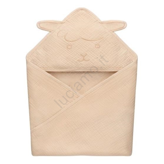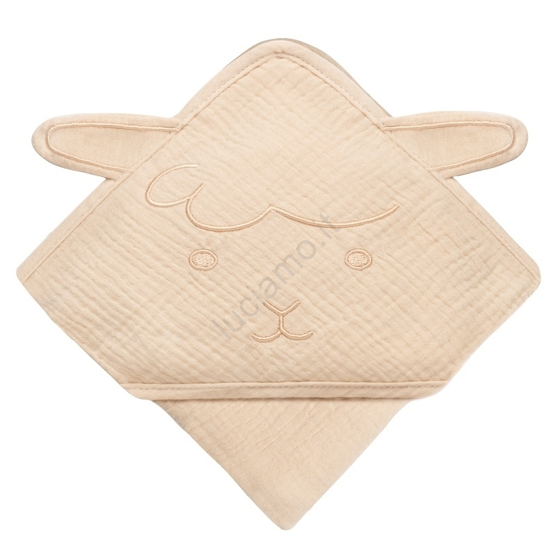 Lionelo - Asciugamano con cappuccio per bambini in mussola, colore Sabbia