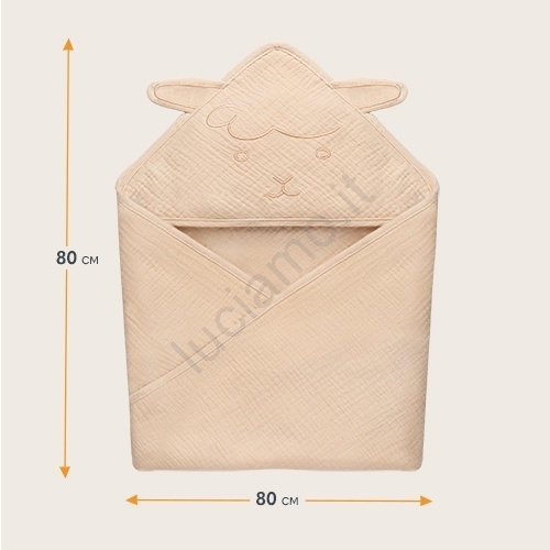 • Asciugamano con cappuccio in morbida mussola di cotone offre il massimo comfort dopo ogni bagno.
