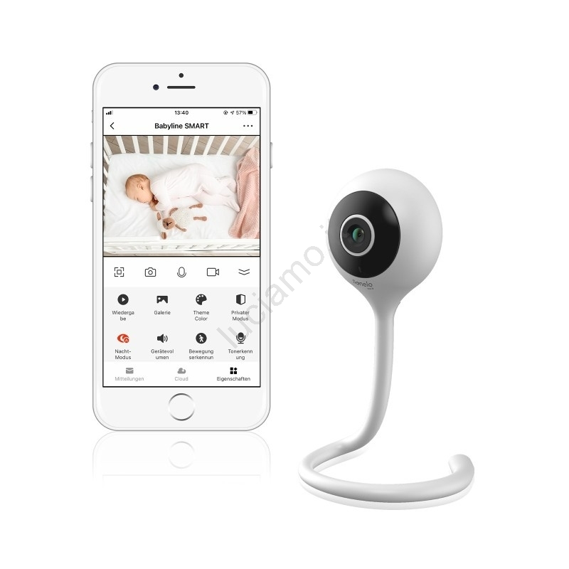 • Il baby monitor video BABYLINE SMART, dotato di base flessibile originale, è progettato per l'uso con il tuo smartphone.