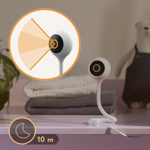 • Con l'app Lionelo Smart e il collegamento via Wi-Fi puoi monitorare il tuo bambino ovunque ti trovi; grazie alle dimensioni compatte della telecamera il baby monitor è ideale anche per i viaggi.
