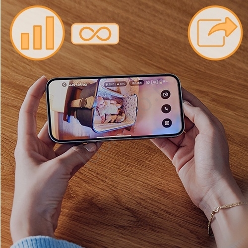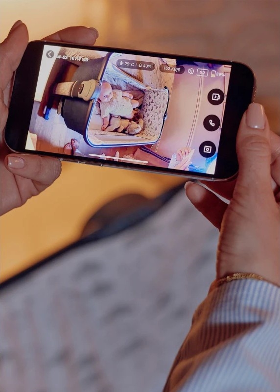 • Si controlla tramite app Lionelo Smart, che consente di visualizzare il video e gestire la telecamera direttamente dallo smartphone.