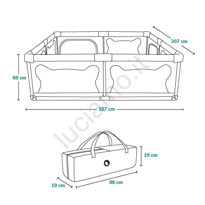 • Le dimensioni del recinto consentono movimenti liberi, rotolarsi, gattonare e i primi passi senza il rischio di allontanarsi dallo spazio.