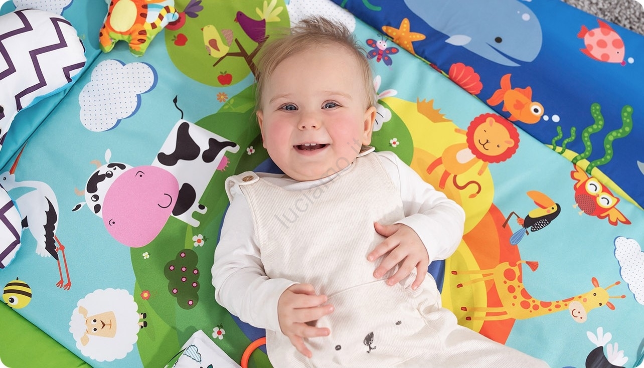 • Morbido tappetino che isola il bambino dal freddo del pavimento.