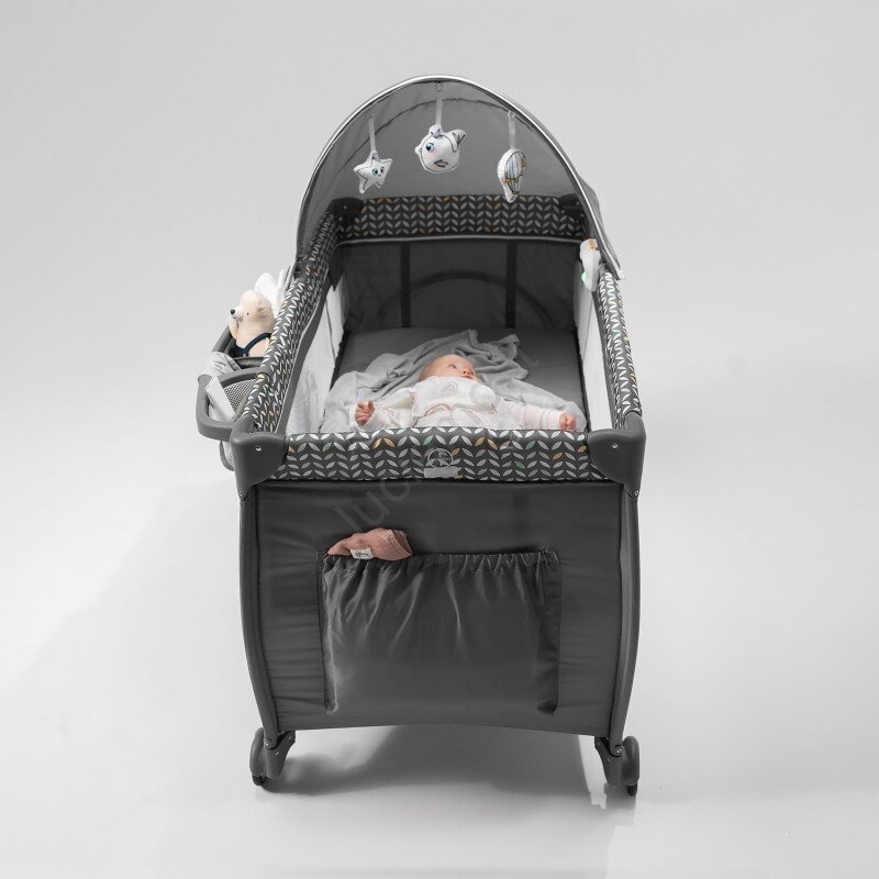 • Nella confezione: fasciatoio con tasche laterali (per pannolini, talco ecc.), cestino portaccessori con due scomparti, ampia zanzariera, capottina e arco con peluche.