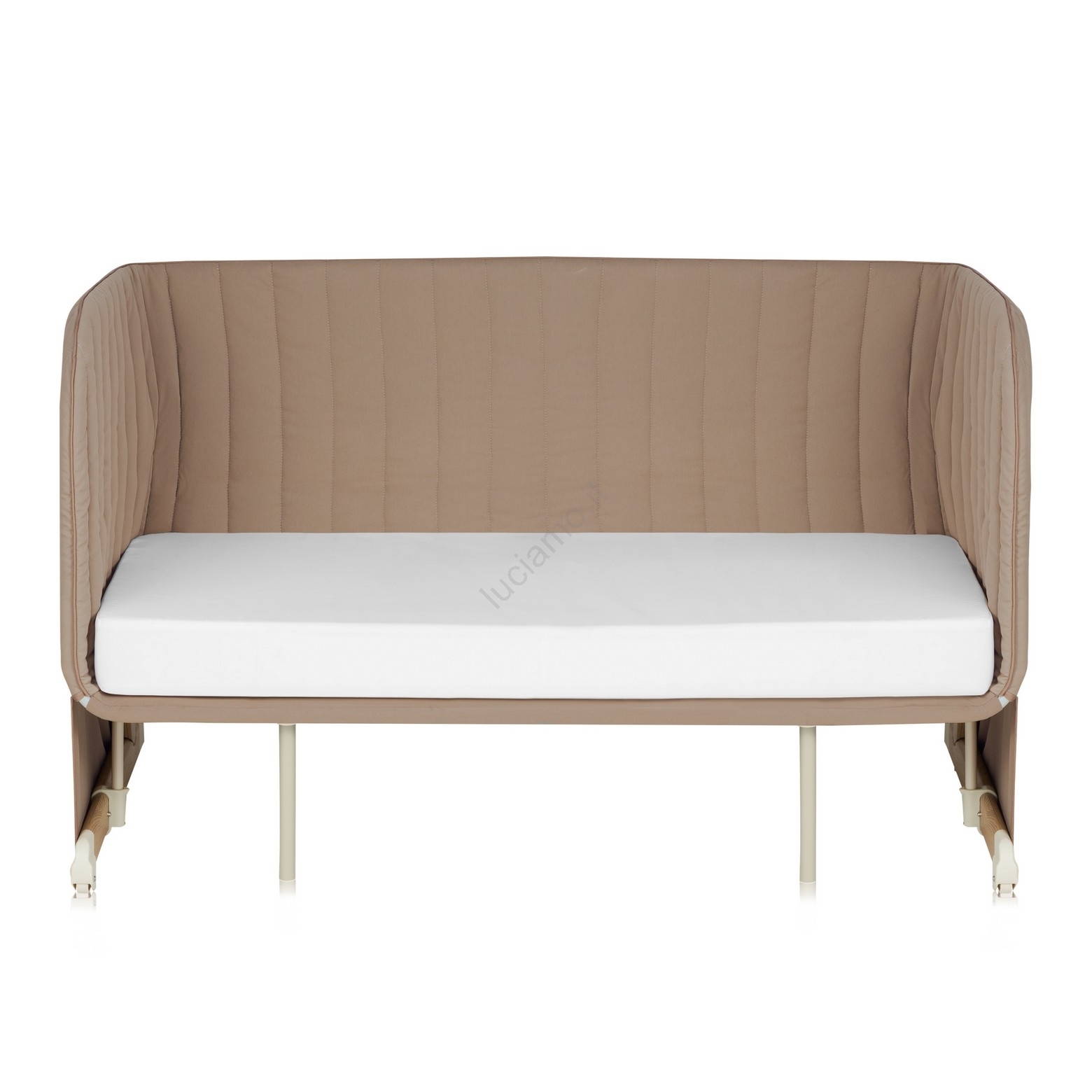 • Letto aggiuntivo con sponda rimovibile e piedi regolabili per adattarsi all'altezza del letto dei genitori.