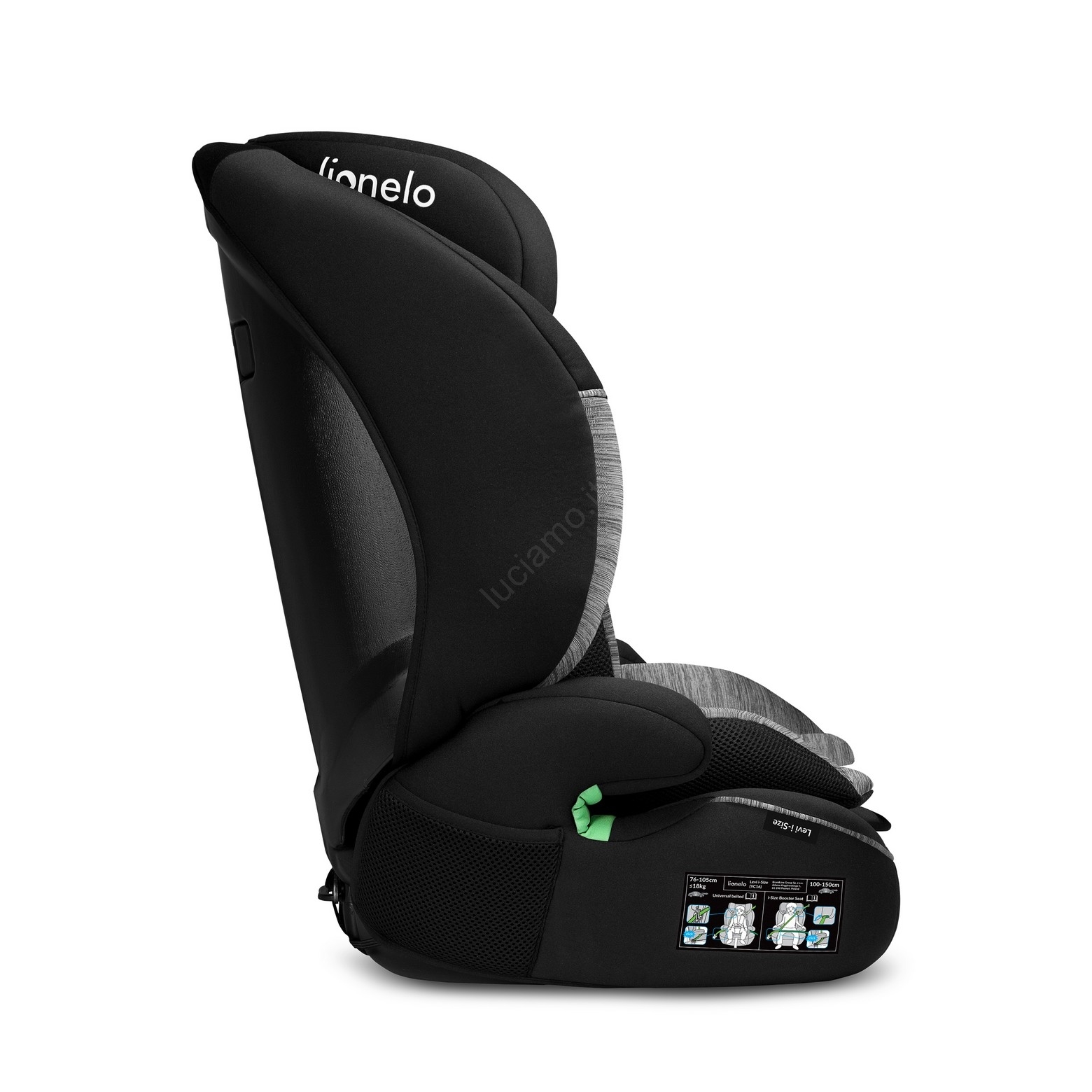 Lionelo - Seggiolino auto LEVI i-Size 76-150 cm Nero/Grigio