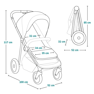 • La cappottina ha un filtro UPF 50+ e uno strato impermeabile che impedisce l’infiltrazione dell’acqua.