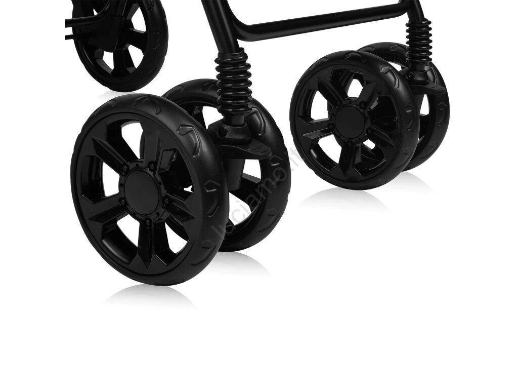 • Le ruote anteriori, per un comfort maggiore, sono girevoli a 360° e dotate di blocco per la marcia in linea retta.