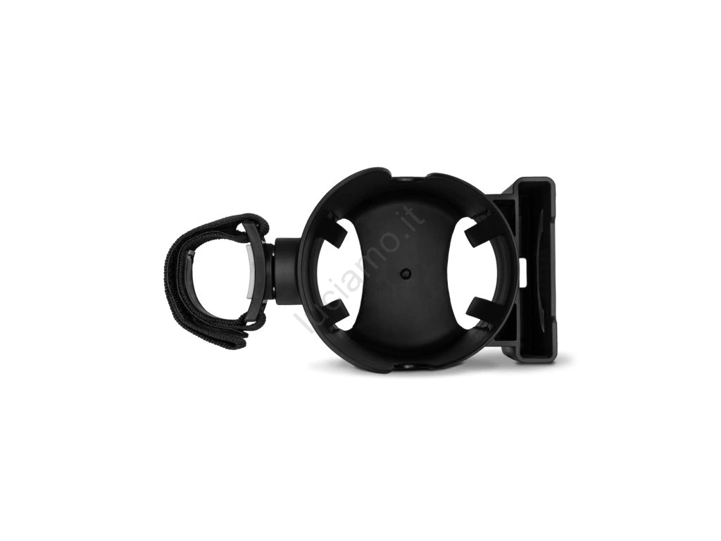 • Permette di fissare un bicchiere o una bottiglia e contemporaneamente lo smartphone alla struttura del passeggino.