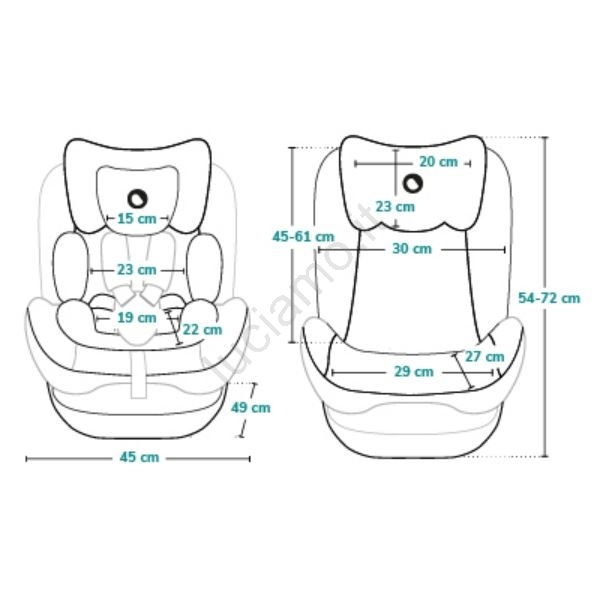 • Grazie alla regolazione del poggiatesta su tredici livelli il seggiolino cresce con il bambino e si adatta alle sue esigenze.