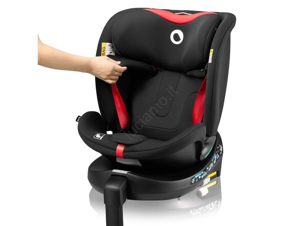Lionelo - Seggiolino auto girevole con base NAVY i-Size 40-150 cm nero/rosso