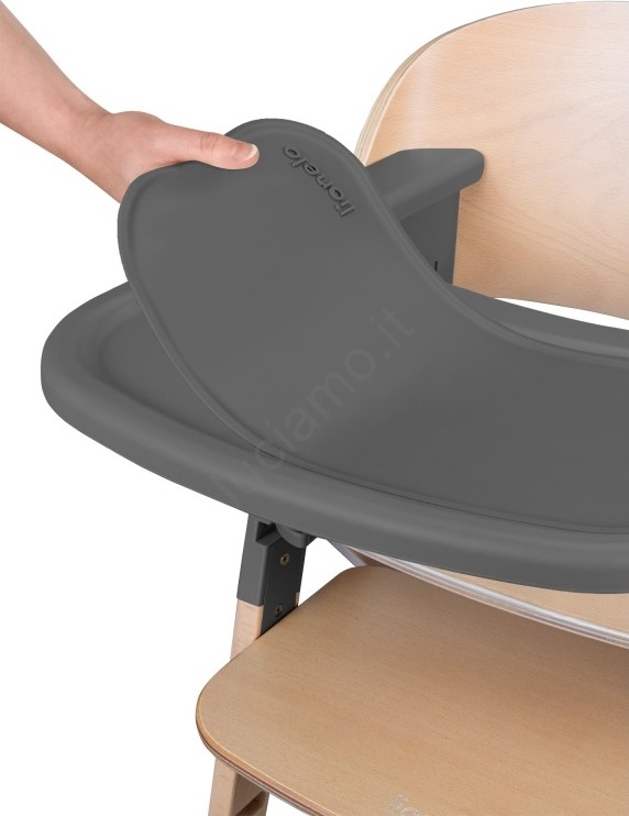 • Include un pratico vassoio con una scanalatura speciale (impedisce la caduta del cibo) e un tappetino in silicone antiscivolo lavabile in lavastoviglie.