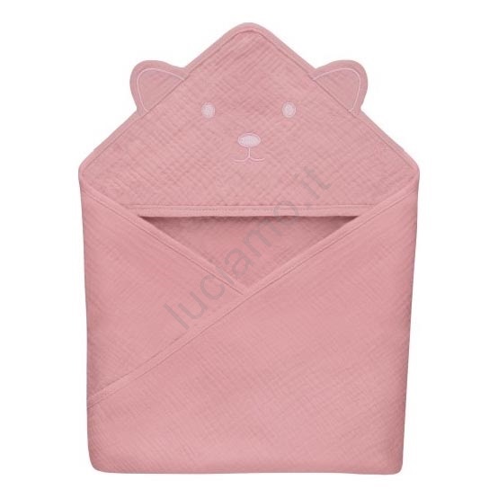 Lionelo - Accappatoio per bambini con cappuccio in mussola MUSLIN HOODED TOWEL Pink Baby