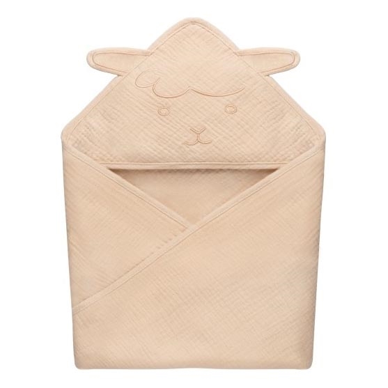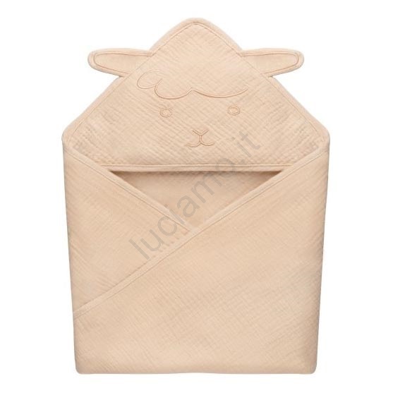Lionelo - Asciugamano con cappuccio in mussola per bambini, colore Beige Cappuccino