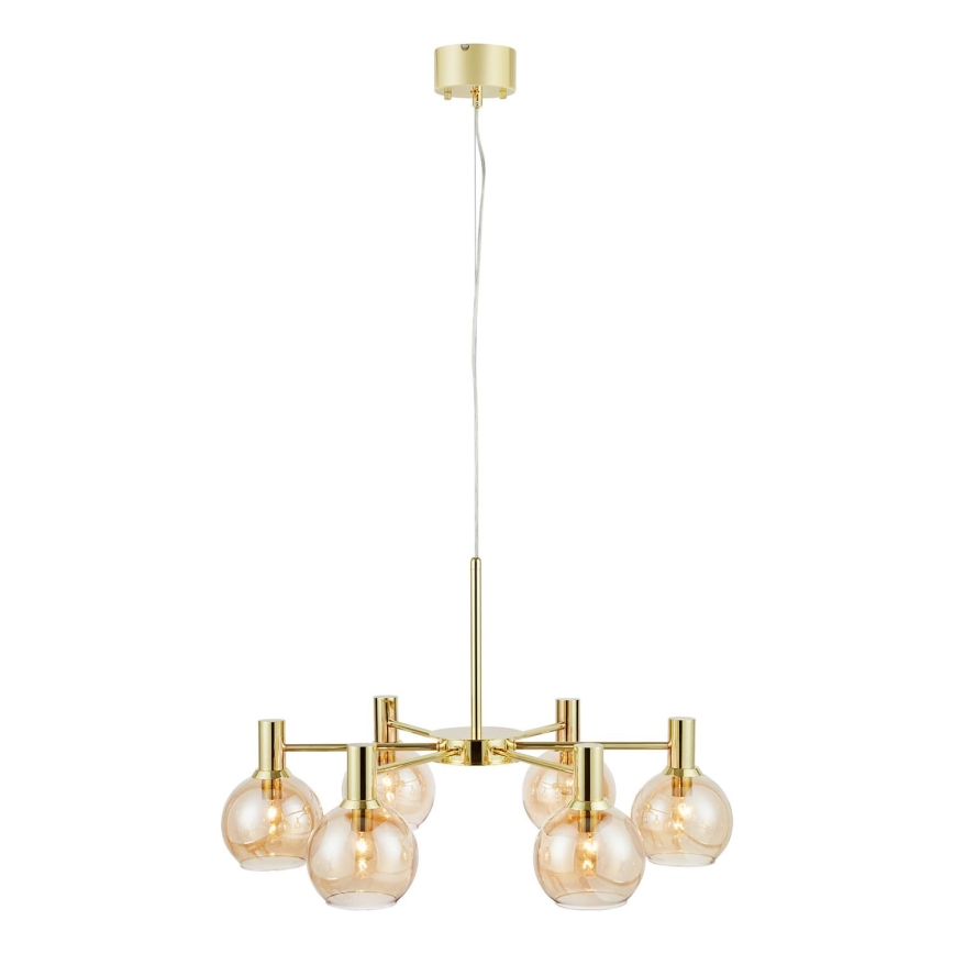 Markslöjd 109153 - Lampadario a cavo AMBRA 6xE14/40W/230V dorato/beige fumé