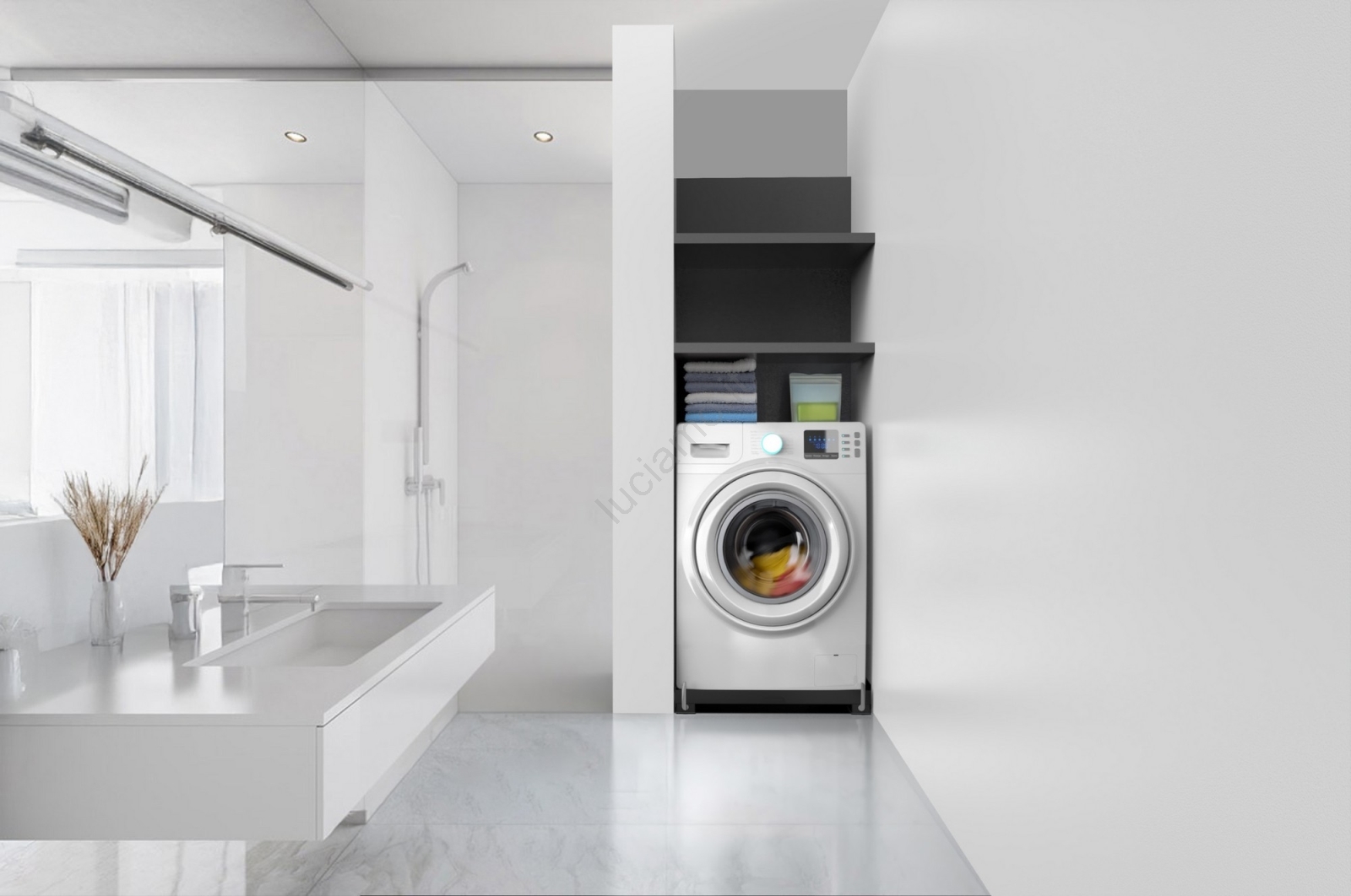 • Base mobile compatta progettata per lavatrici e asciugatrici „Slim“ con profondità fino a 47 cm.