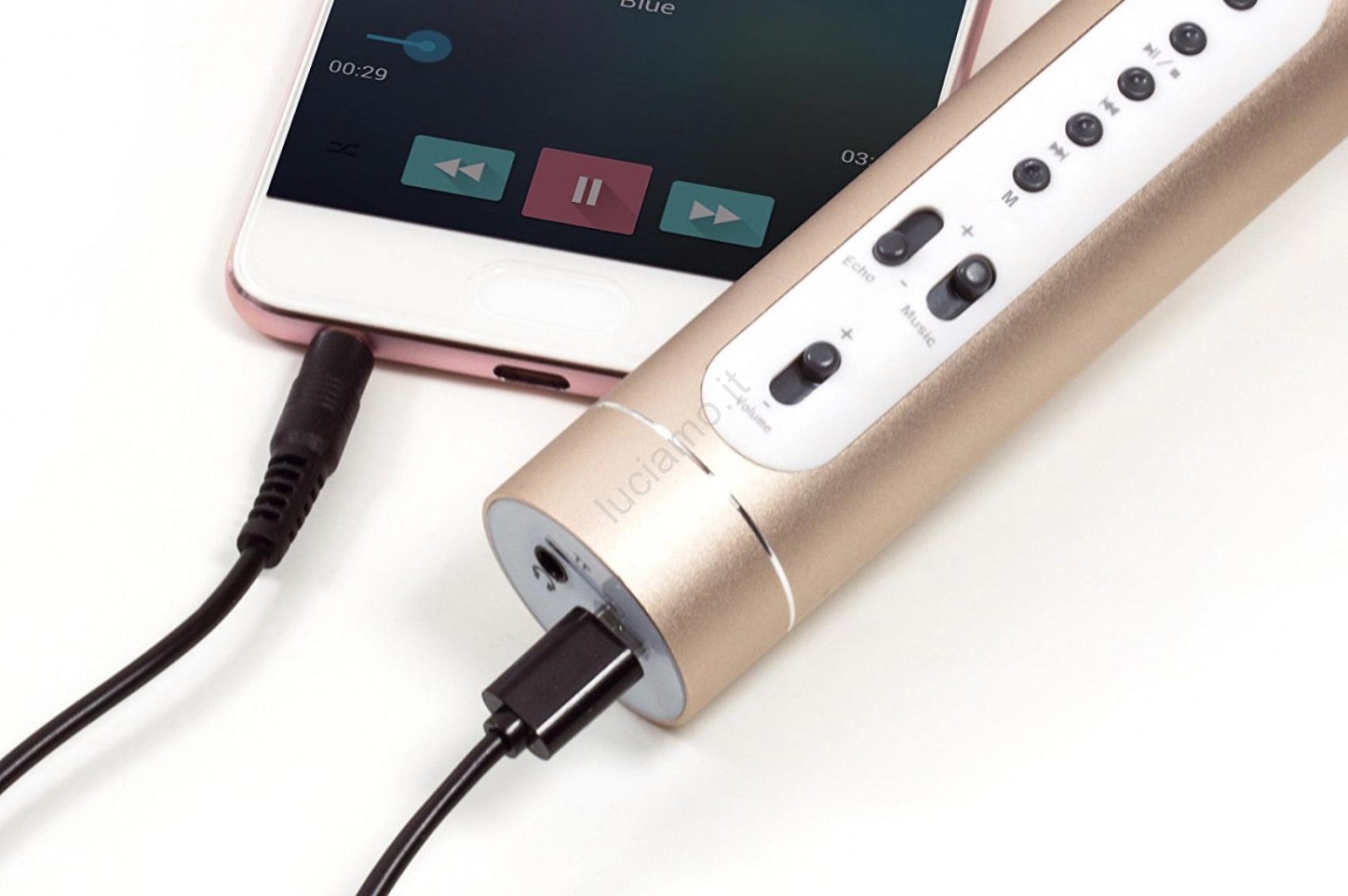 • Contenuto della confezione: microfono karaoke, cavo di ricarica USB a Micro USB, cavo audio, manuale d'uso.