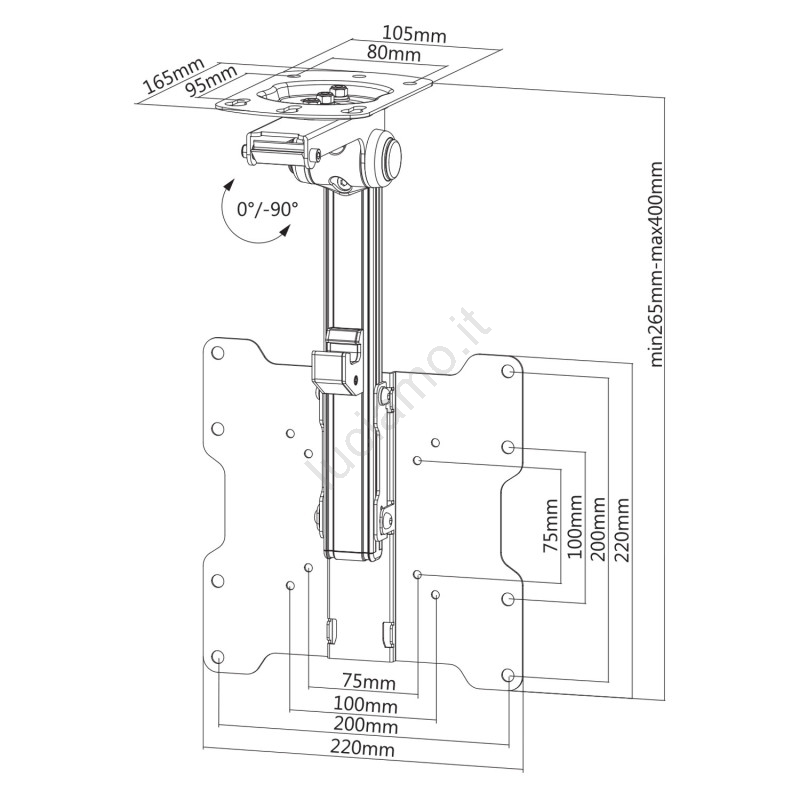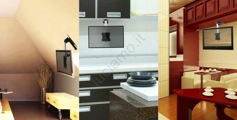 • Supporto inclinabile per TV progettato per il montaggio a soffitto, incluso l’installazione su soffitti inclinati nelle mansarde.