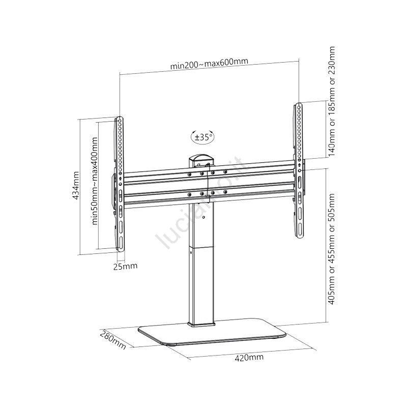 • Con una portata massima di 40 kg gestisce la stragrande maggioranza dei televisori di medie dimensioni.