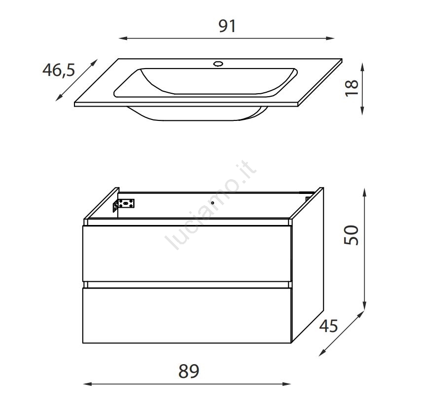 • Offre ampio spazio contenitivo per gli accessori da bagno e un vano dedicato per tubazioni e sifone.