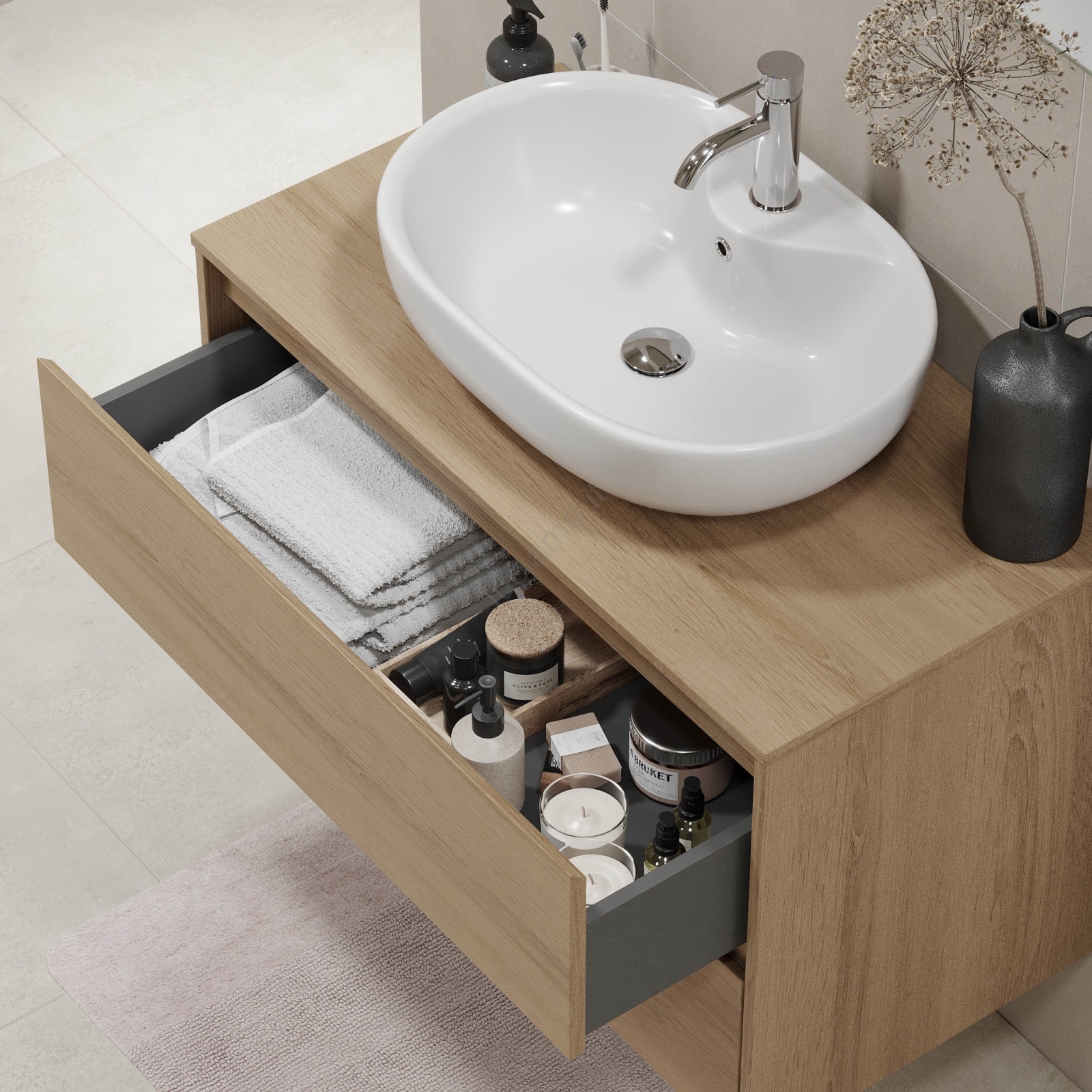 • Mobile da bagno TRONDHEIM per lavabo da 90 cm, rovere