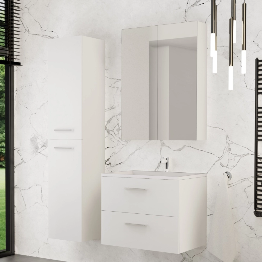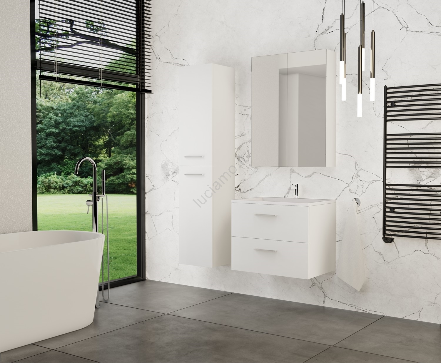• Mobile da bagno con lavabo KATE + armadietto con specchio + pensile da parete bianco