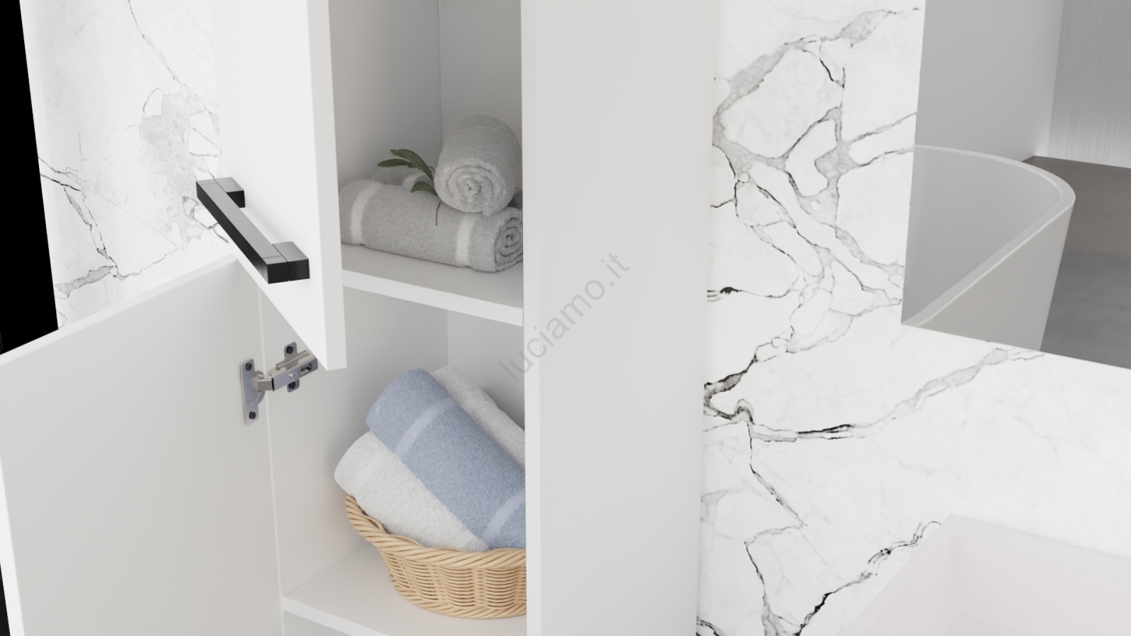 • Il mobile alto offre ampio spazio di stoccaggio grazie a diversi ripiani facilmente accessibili.