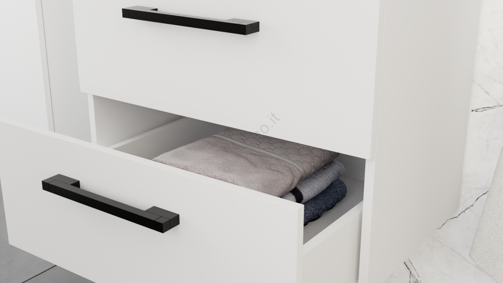 • Il mobile sottolavabo offre due pratici cassetti, con la parte superiore progettata per sfruttare al massimo lo spazio intorno al miscelatore e al tubo di scarico.