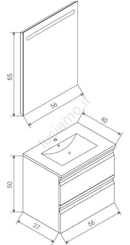 • Dimensioni del mobile inferiore: 50 x 40 x 56 cm.