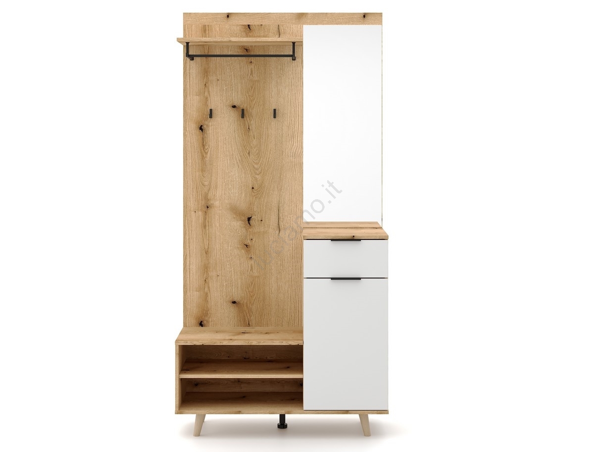 • Ripiani aperti, ganci, barra per appendere cappotti e un ampio specchio offrono tutto ciò di cui hai bisogno.