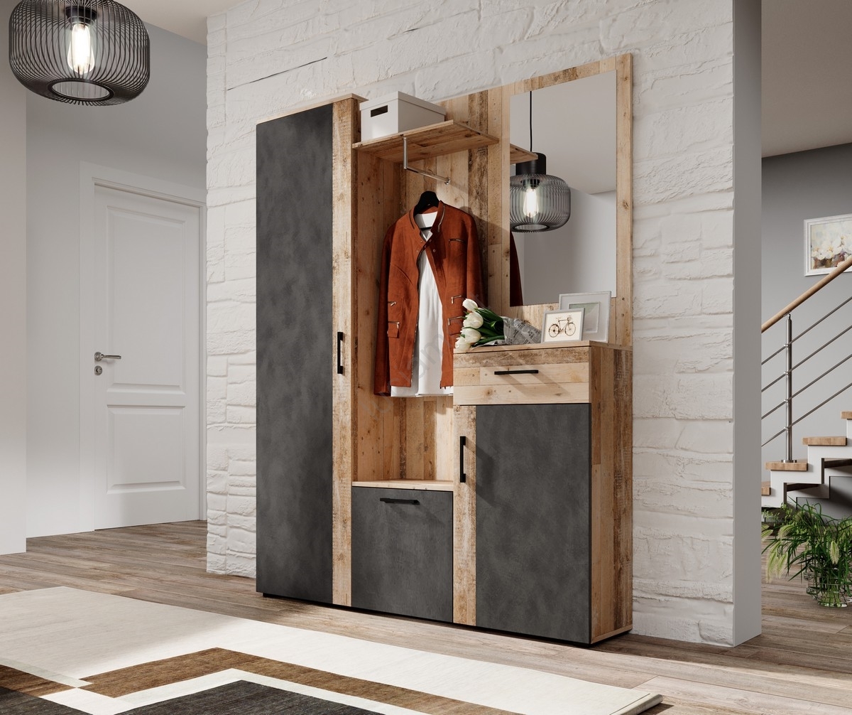 • Mobile da ingresso con specchio NOLAN rovere artisan/bianco
