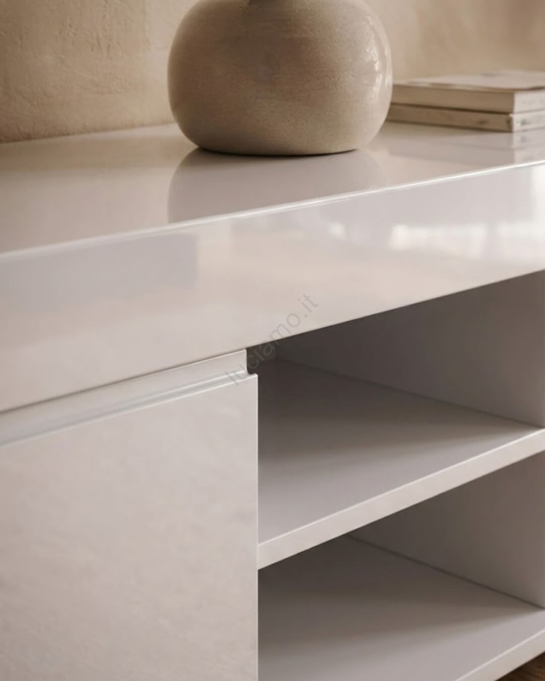 • Grazie alla forma rettangolare allungata è ideale da posizionare sotto una TV a parete o come soluzione contenitiva moderna per il soggiorno.