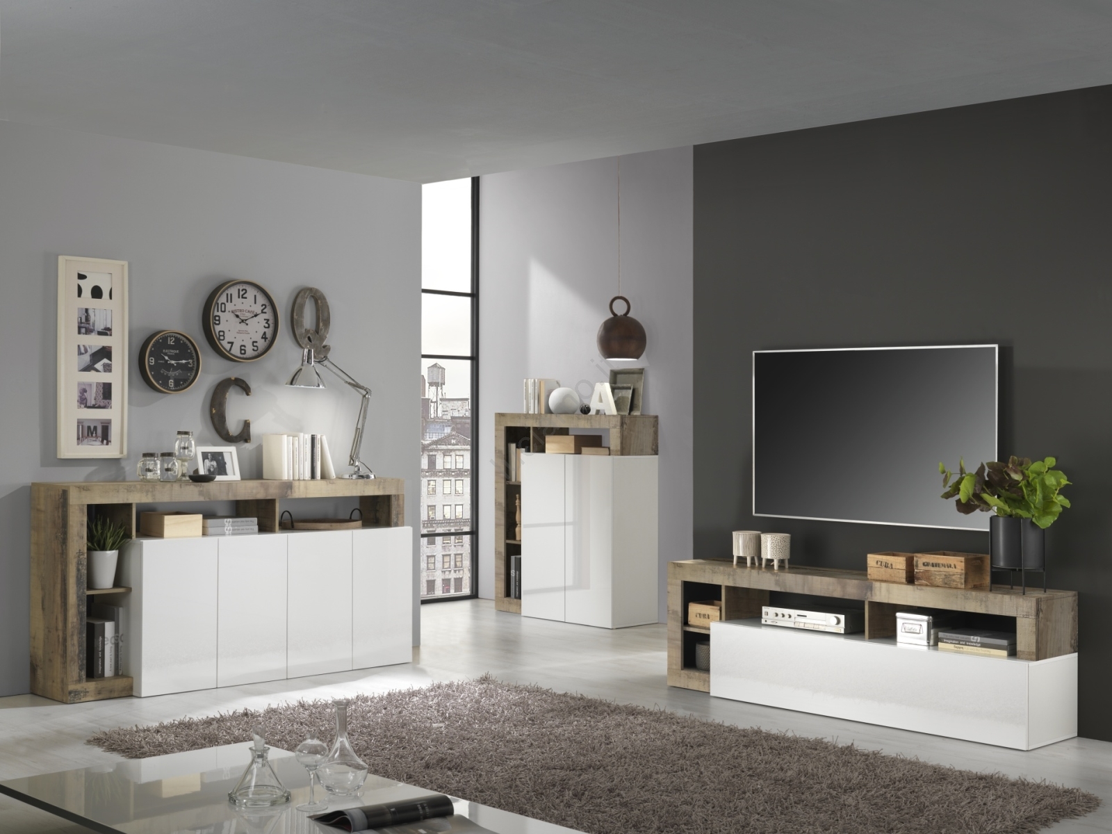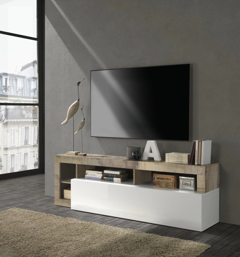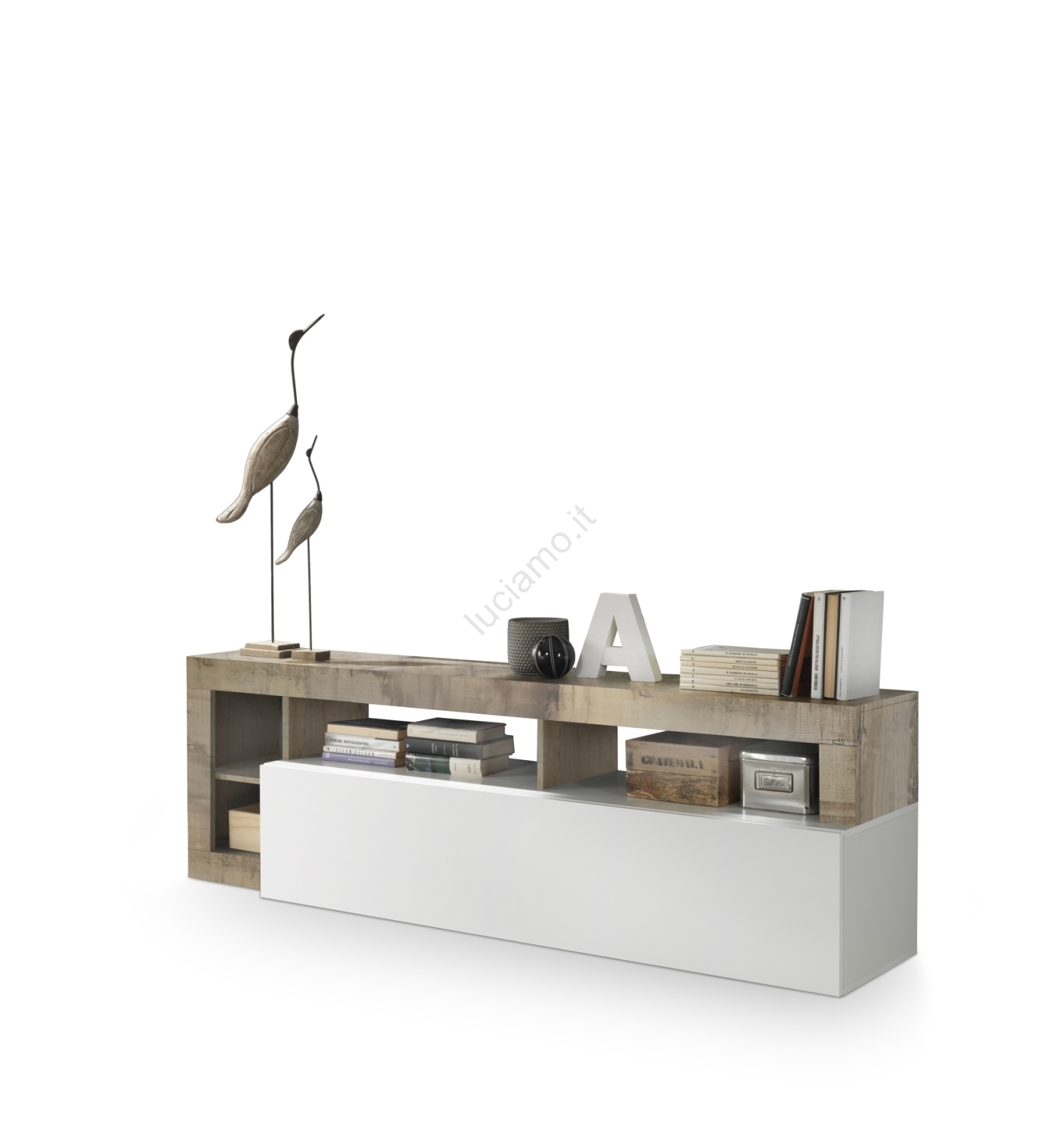 • Mobile porta TV LENOR, bianco/grigio effetto cemento