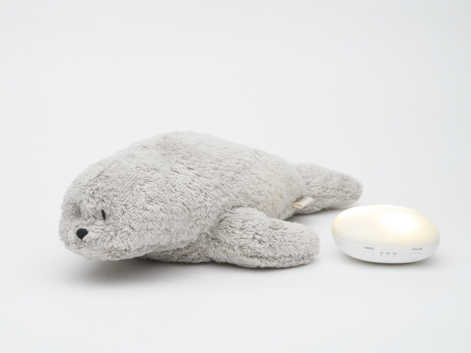 • Moonie - Compagno per la nanna con melodia e luce, foca grigio organico