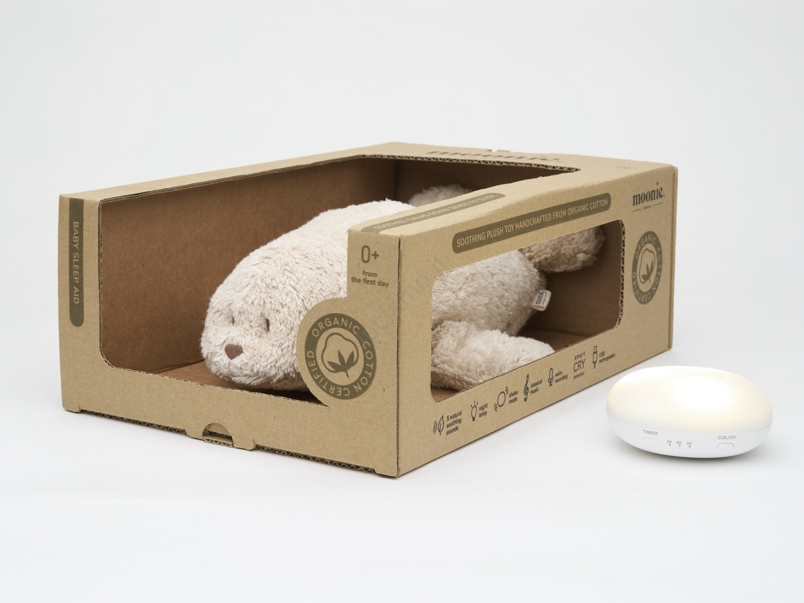 • Moonie - Peluche per la nanna con melodia e luce foca Organic Polar