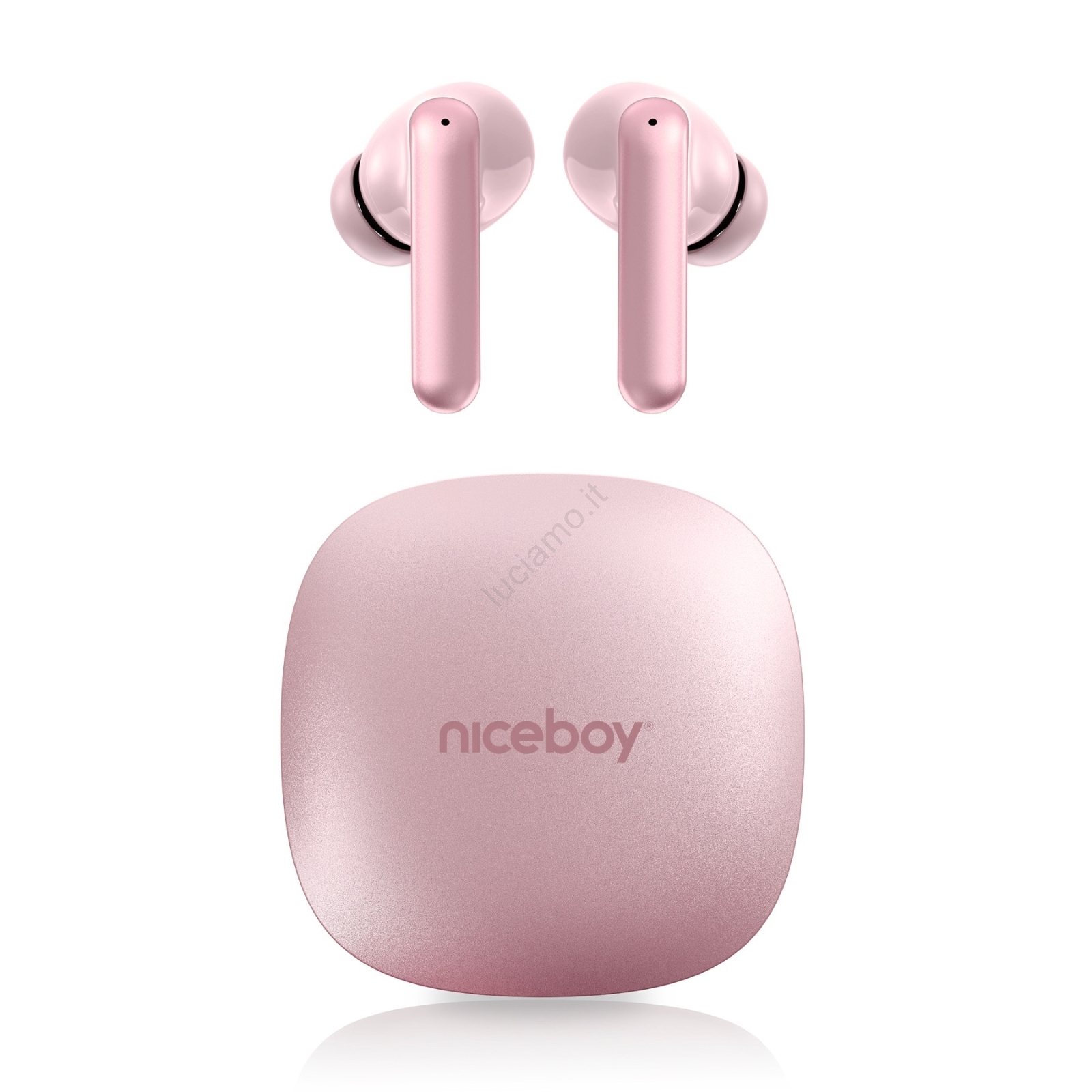 Niceboy Pins 4 PRO - Auricolari wireless con ANC, 380 mAh + 2x 35 mAh, IP54, rosa