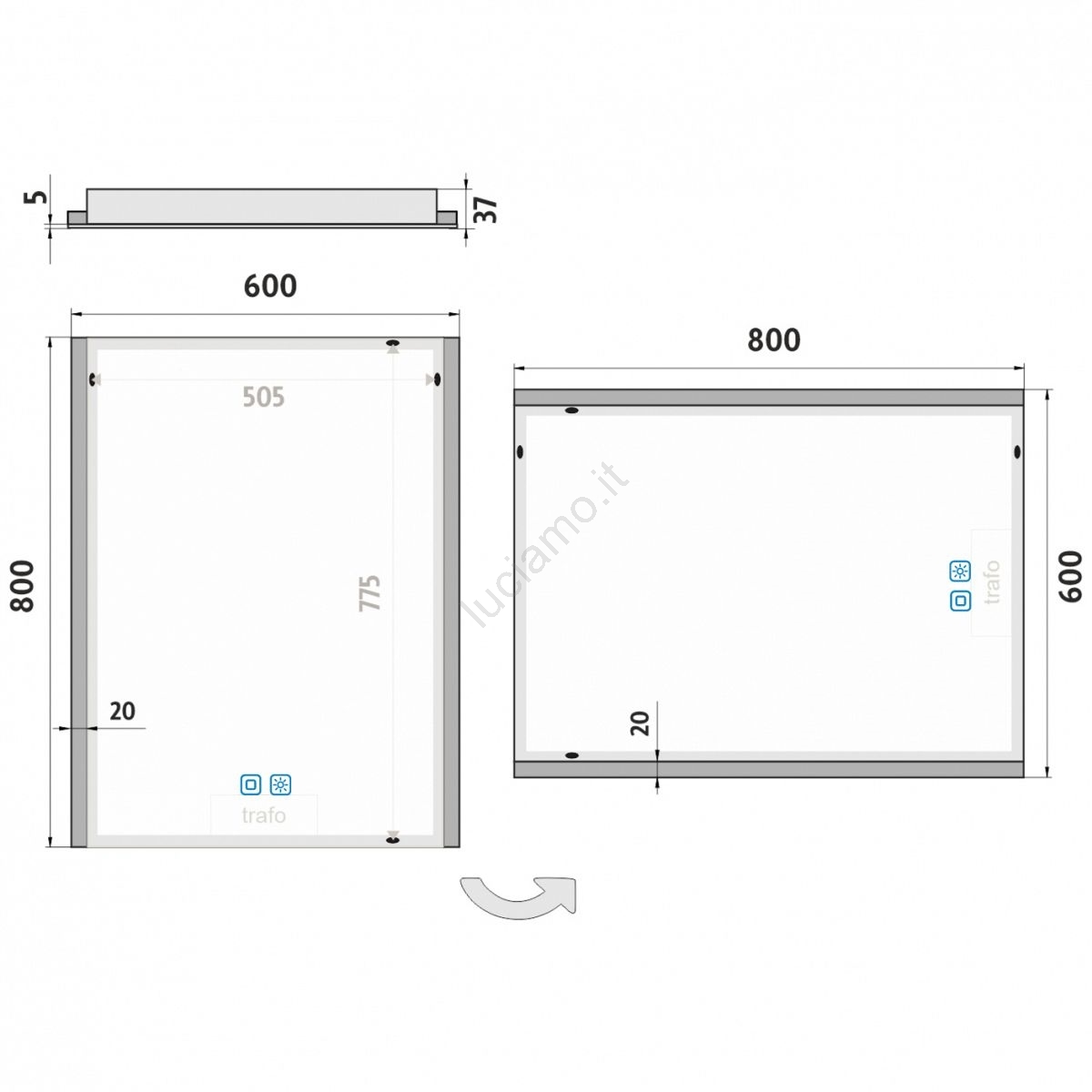 • Lo specchio dispone inoltre di una funzione memoria che conserva l'ultima impostazione di intensità luminosa e della temperatura di colore.
