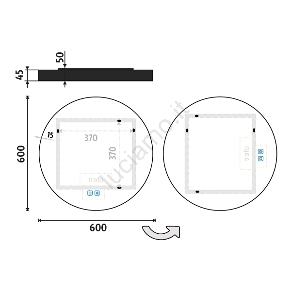• Lo specchio dispone inoltre di una funzione memoria che ricorda l'ultima impostazione dell'illuminazione e della temperatura di colore.